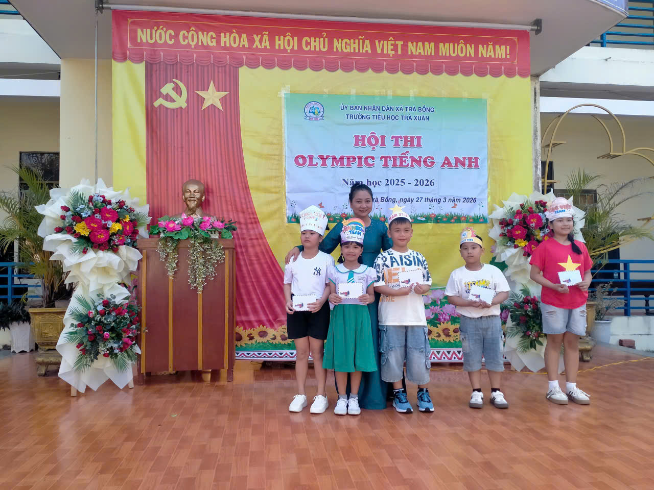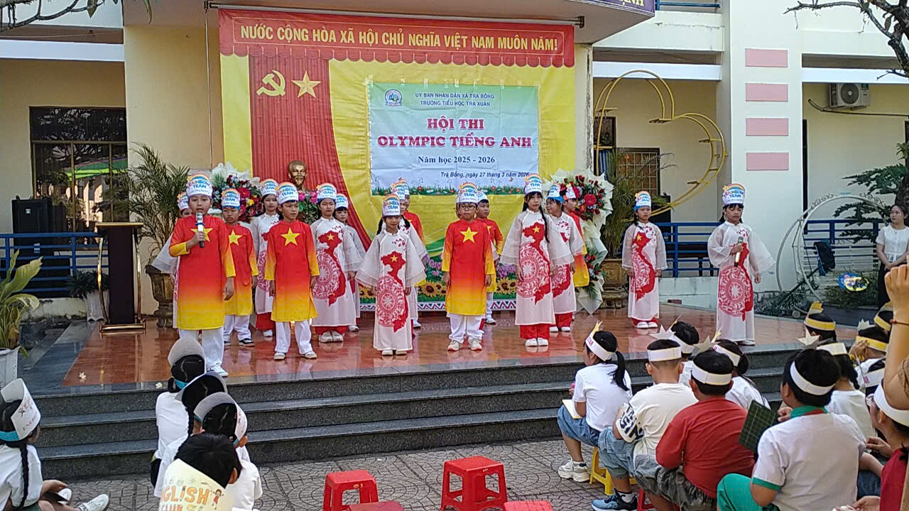 Sáng ngày 27/3/2026 trường Tiểu học Trà Xuân diễn ra Hội thi Olympic Tiếng Anh, hoạt động để các bạn học sinh khối 3, khối 4, khối 5 học hỏi và giao lưu trải nghiệm, trao dồi kiến thức ngôn ngữ nghe, viết, nói, tiết mục văn nghệ lời ca tiếng anh.